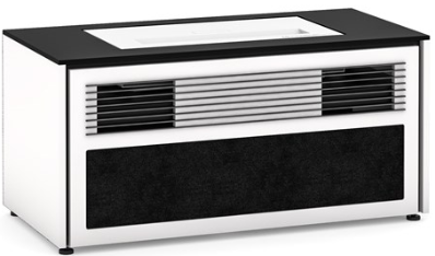 Siena 229S Cabinet design for integrated LG UST Projector with gloss white finish. Warm white side panels and doors beautifully offset the black glass top.Read More