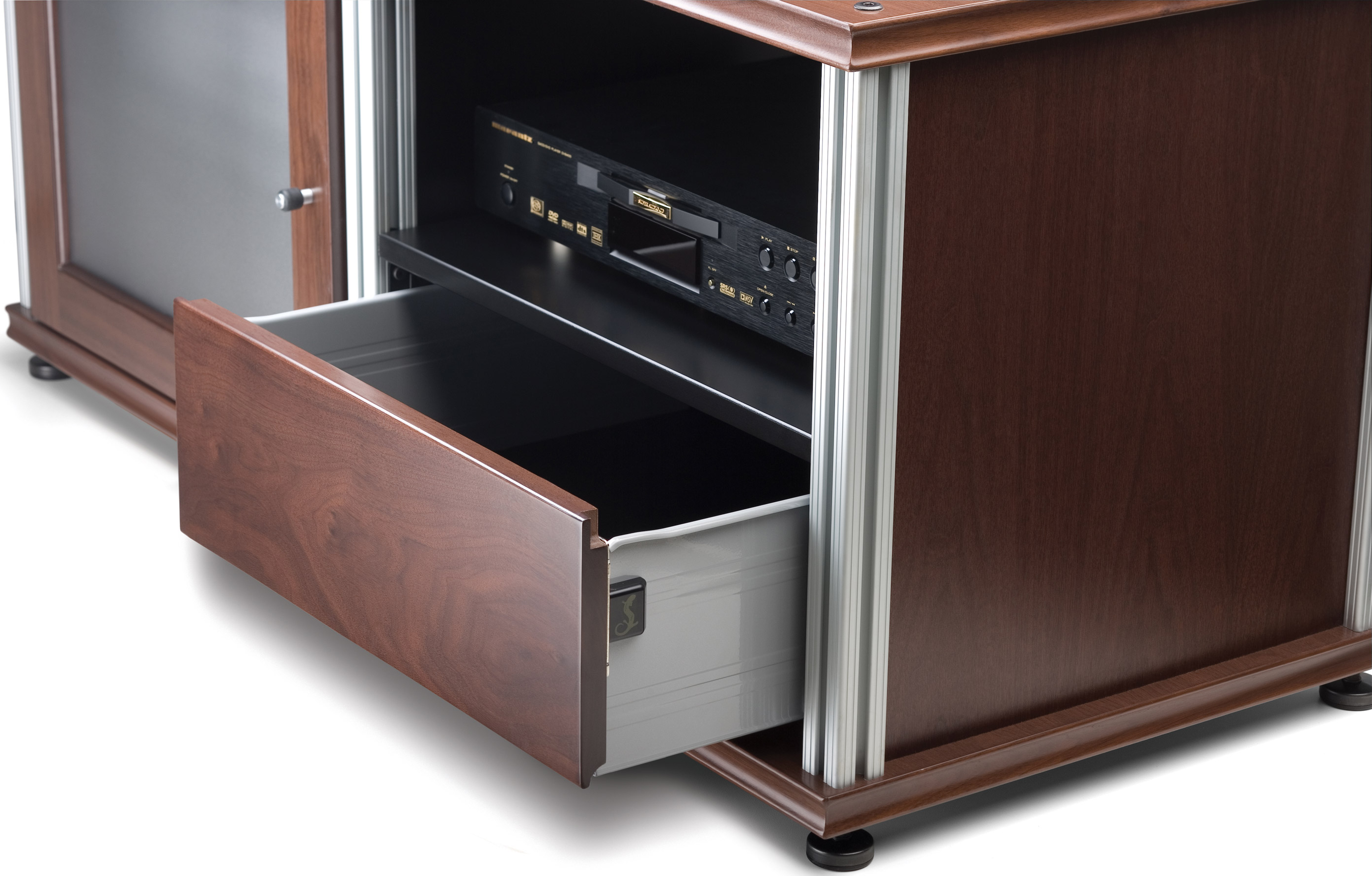 Media Drawer will keep media or other items hidden yet at hand. Drawers may be placed at any convenient height along support posts. Roller drawer slides provide a smooth open and close.Read More